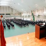 まず、退任式があり、校長先生から退任される先生の紹介と、代表の先生からのご挨拶がありました。