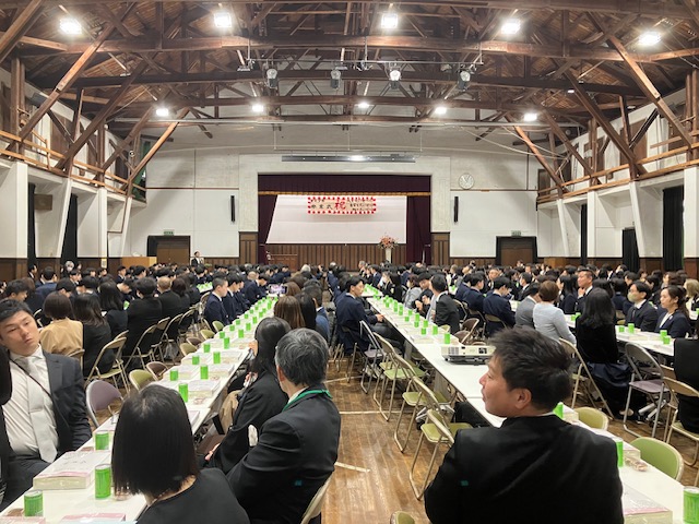 第二部の祝宴は、小体育館に会場を移し、コロナ禍でやむを得ず中止となって以来七年ぶりに会食を取り入れた会でした。