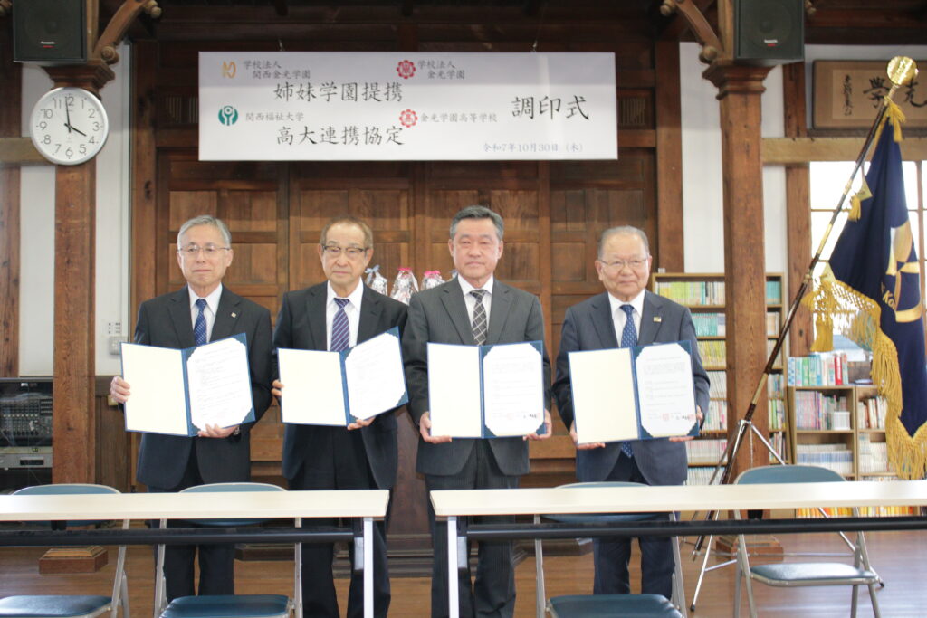 この度、学校法人金光学園は、学校法人関西金光学園*と姉妹学園提携を締結しました。また、金光学園高等学校は関西福祉大学と高大連携協定を締結し、10月30日(木)に調印式を執り行いました。